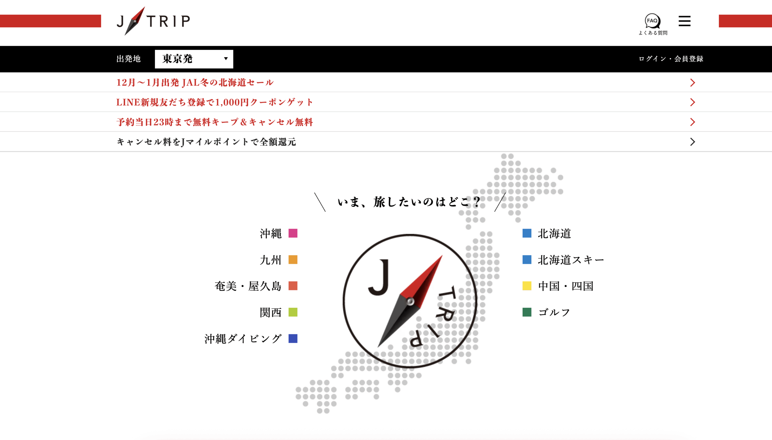 ジェイトリップは、JAL(日本航空)のグループ便を利用したパッケージツアーを専門に扱うオンライン旅行予約サイトです。北海道から沖縄まで日本全国を網羅しており、航空券と宿泊がセットになった自由度の高いプランが強みです。